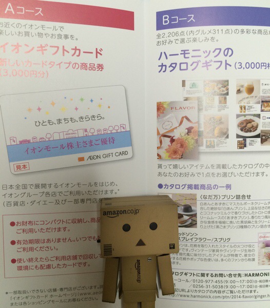 イオンモールの優待はイオンギフトカードを貰います。